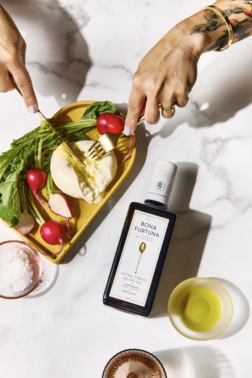 Together they’ve crafted the KA Chef’s Blend Olive Oil, a bold yet elegant extra virgin olive oil made from hand-picked Sicilian olives, cold-pressed within 24 hours to preserve vibrant flavor and quality. The result is smooth, full-bodied, and expressive, with tasting notes of pink pepper, wet grass, and freshly bloomed wildflowers.